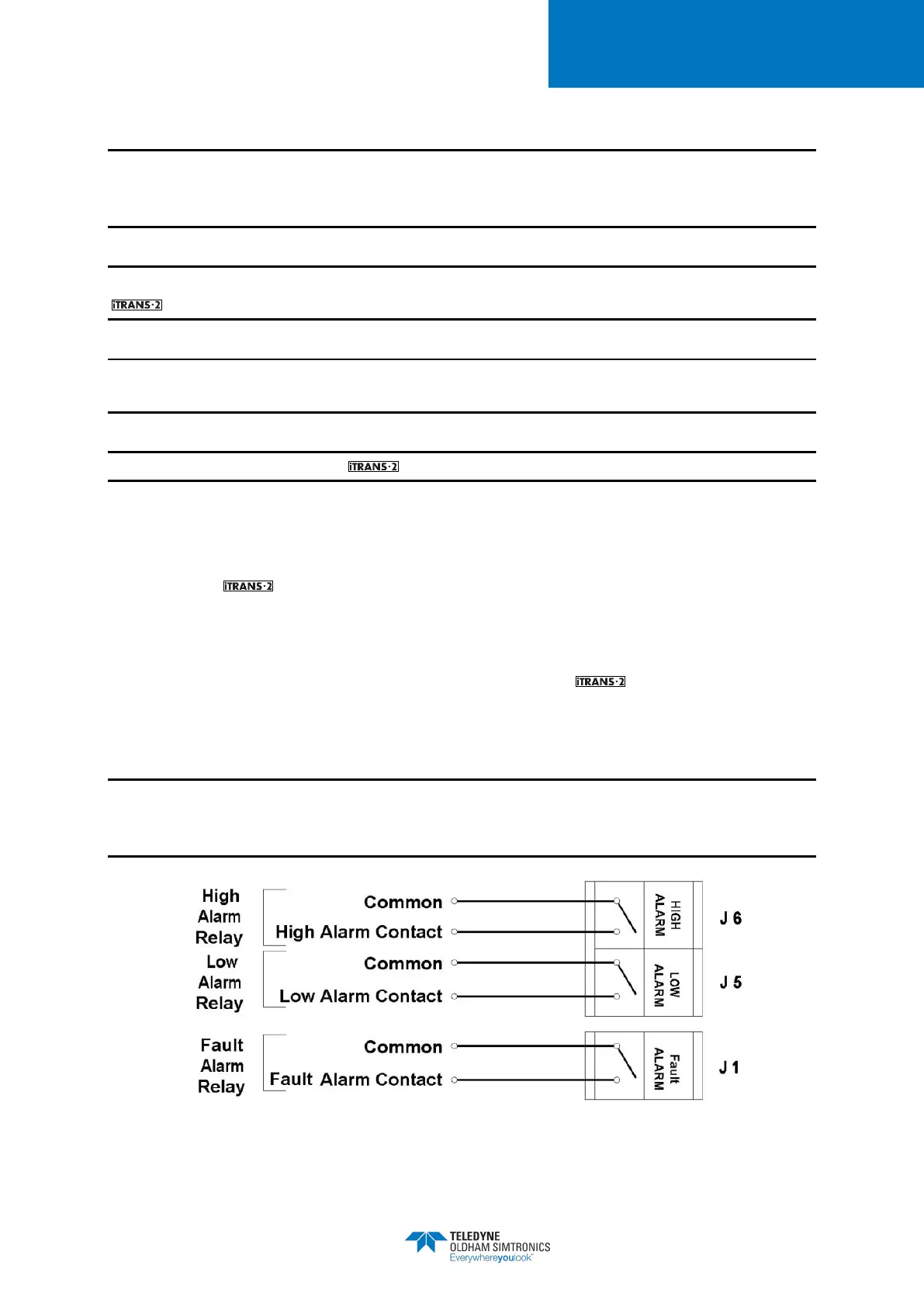 threshold is met. This is a non-latching, Normally Open (NO) contact. The high alarm relay is