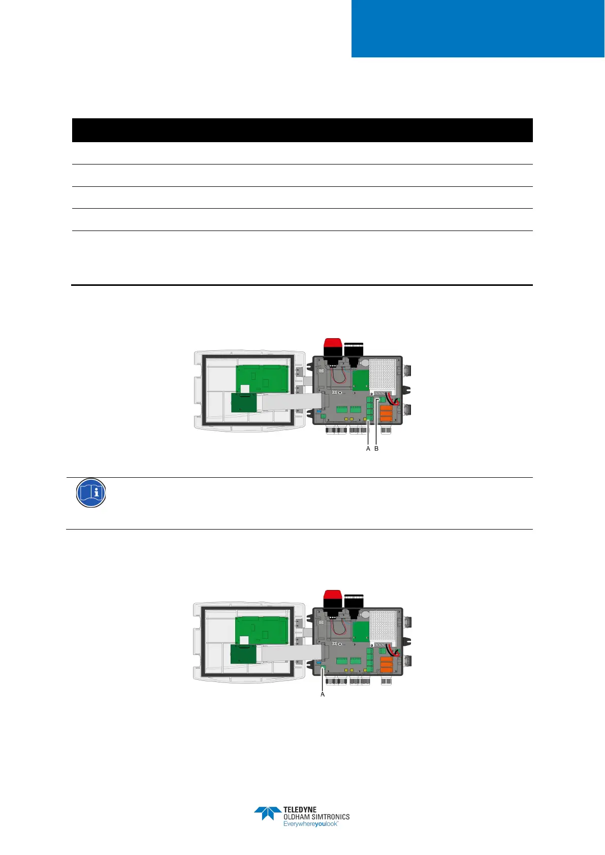 Figure 27: Internal alarm relays (A) and fault relay (B) terminals