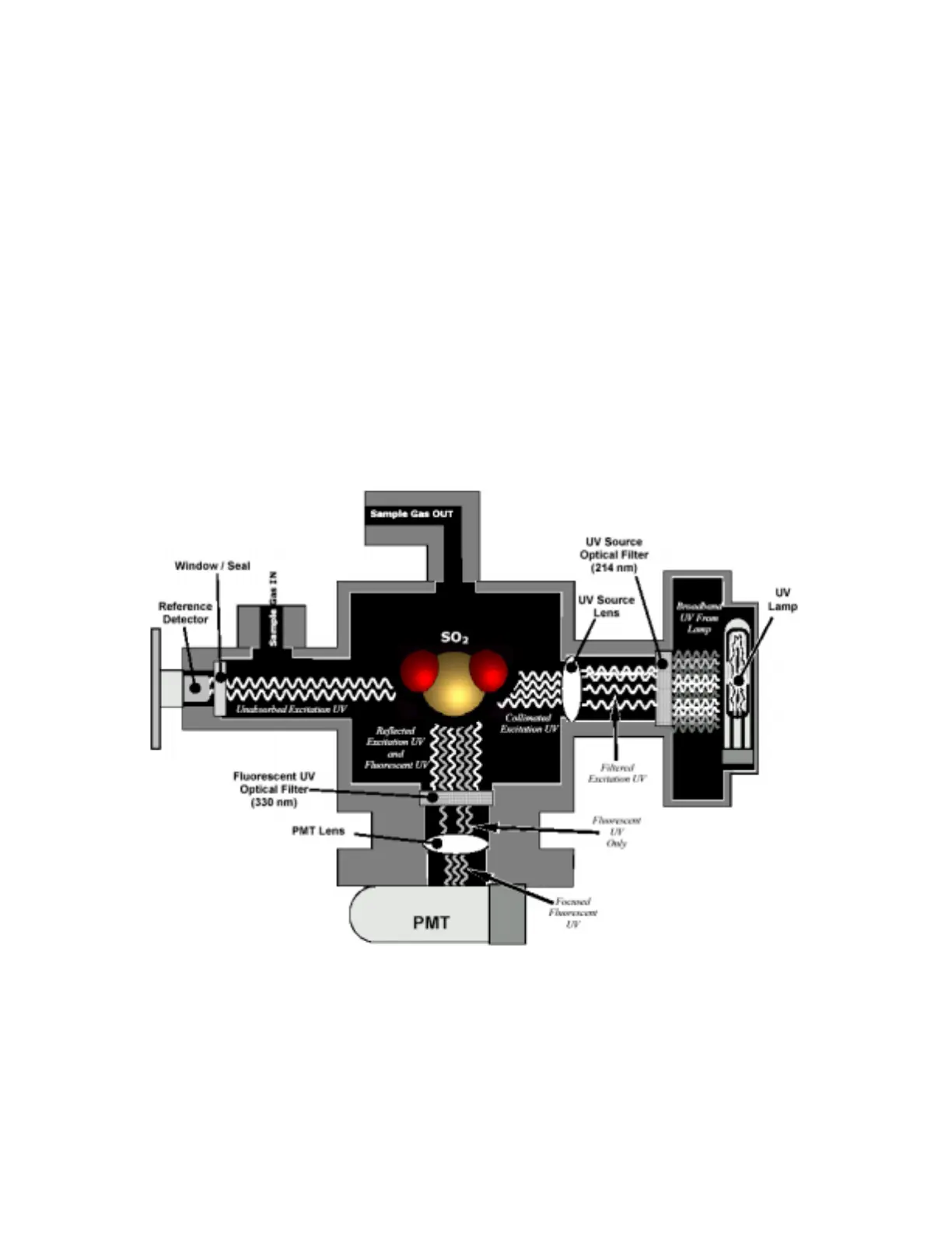 Photo Multiplier Tube (PMT) detects the UV given off by the SO
