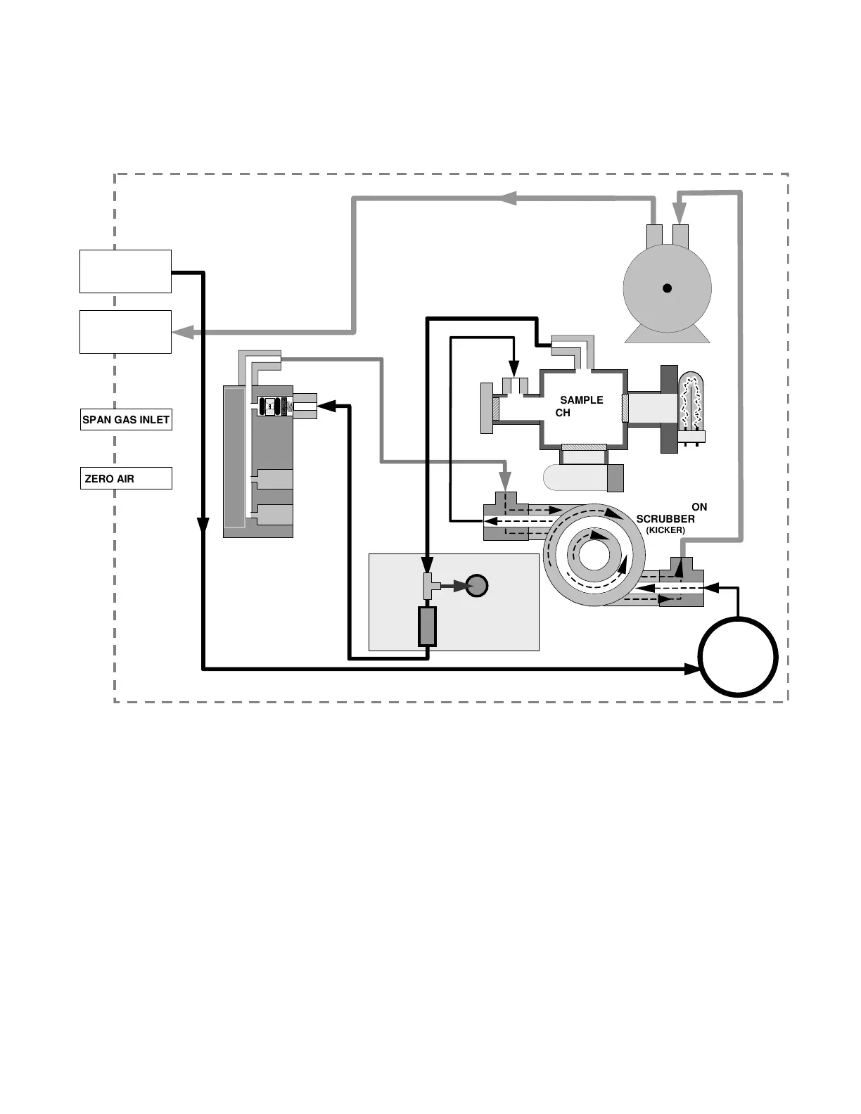 Figure 3-10 shows the internal gas flow diagram for the M100E in its basic configuration.