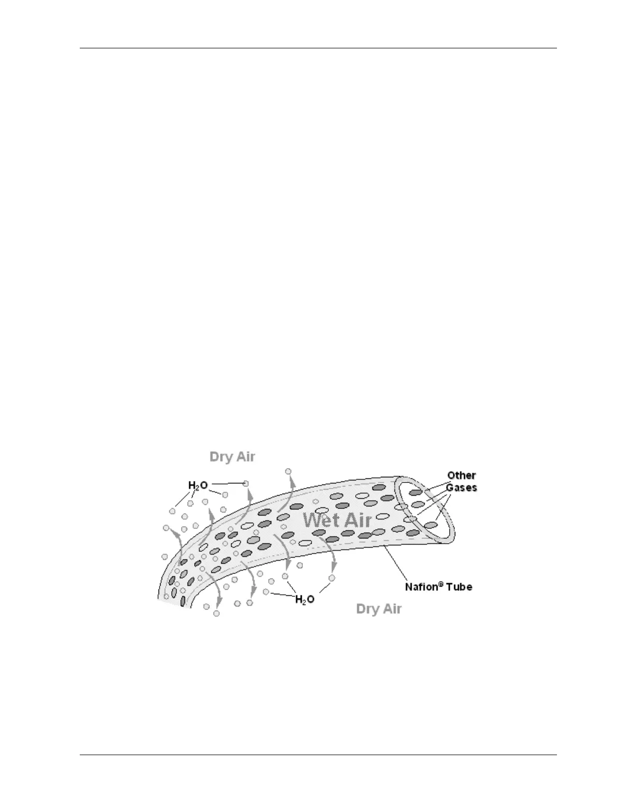 flexible plastic tube. As gas flows through the inner Nafion