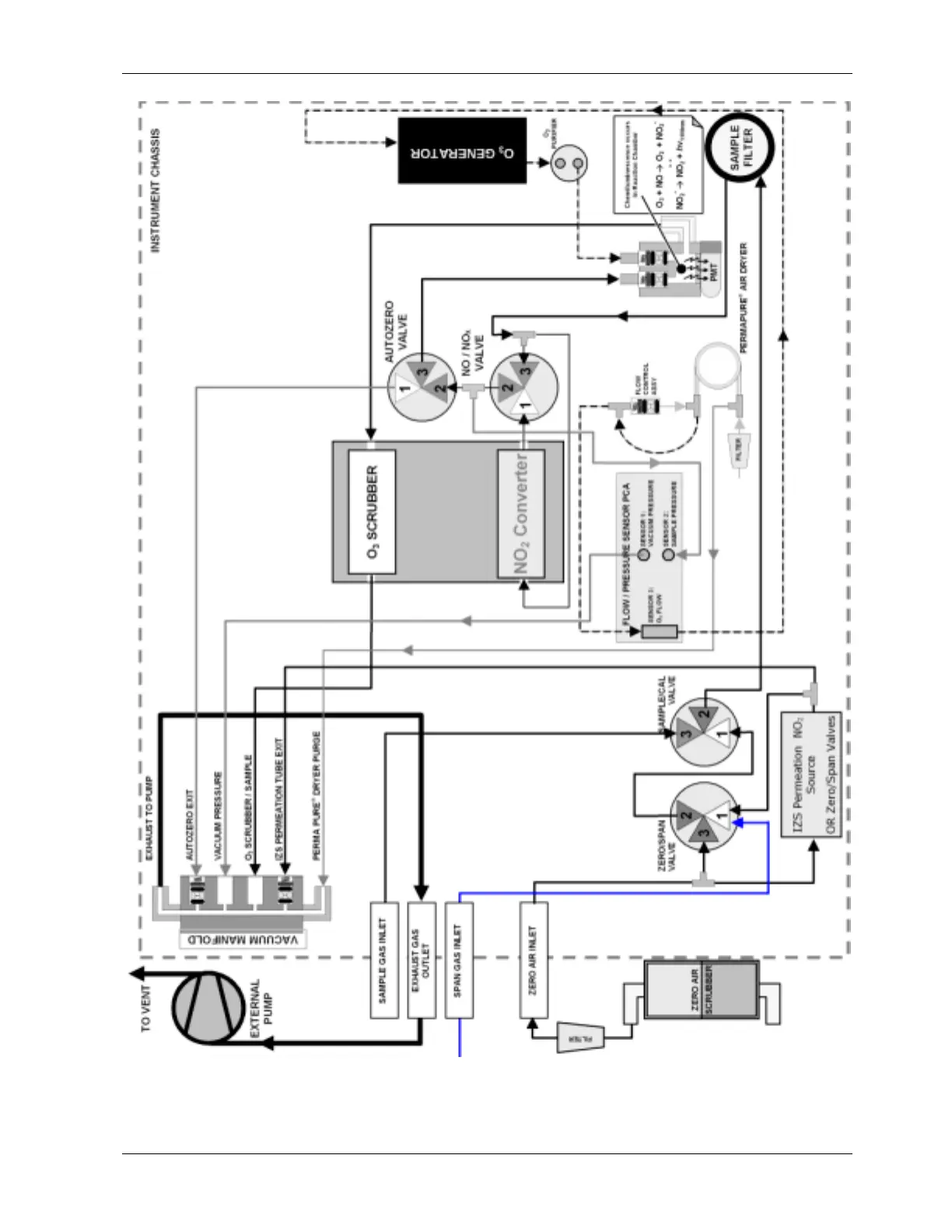 Teledyne 200E - Figure 3-12: M200 E Pneumatic Diagram with Options Installed