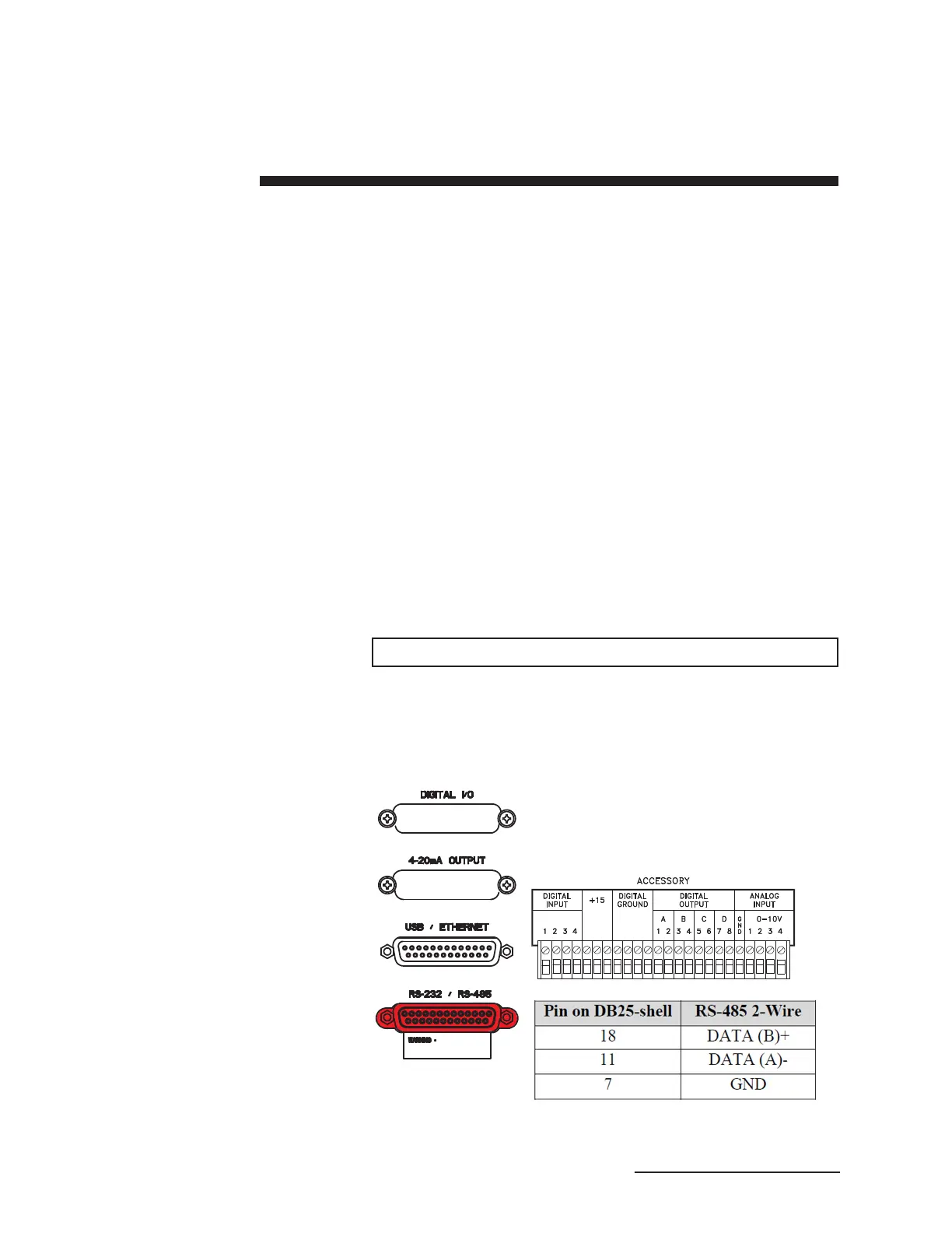 DB25 connector labeled RS-232/RS-485. We recommend