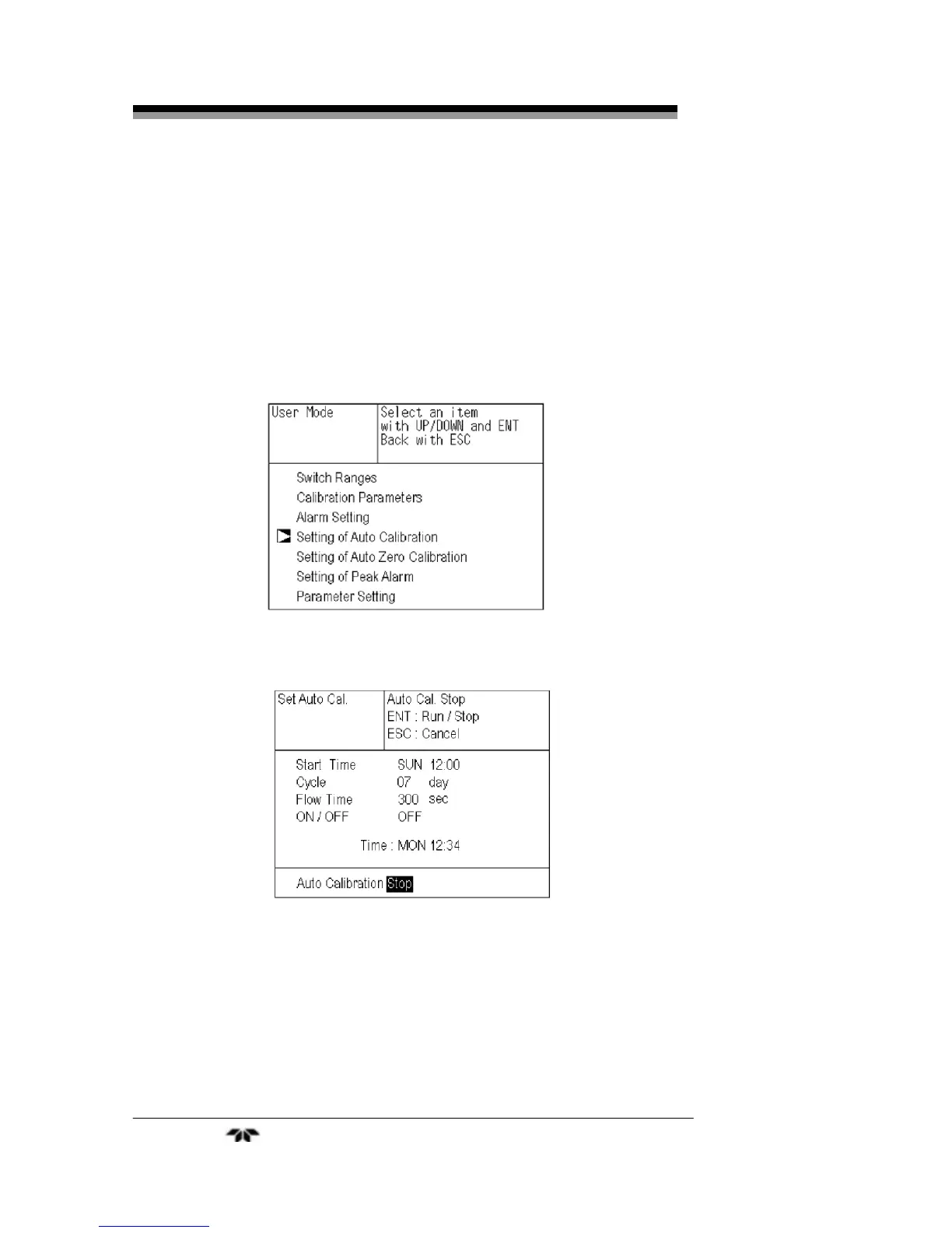 the stop of auto calibration. Press the ENT key to stop the