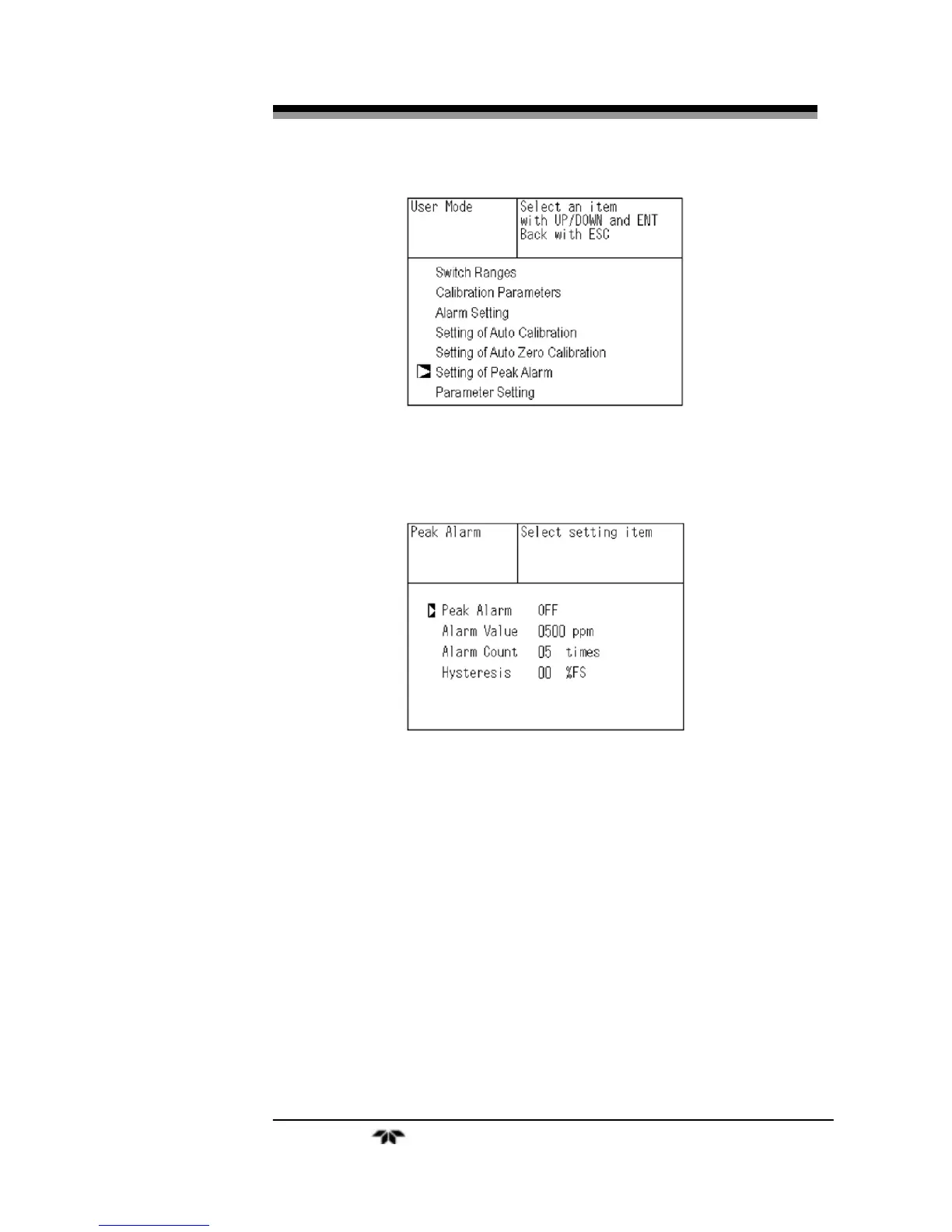 In the “Peak Alarm Setting” item selection screen that
