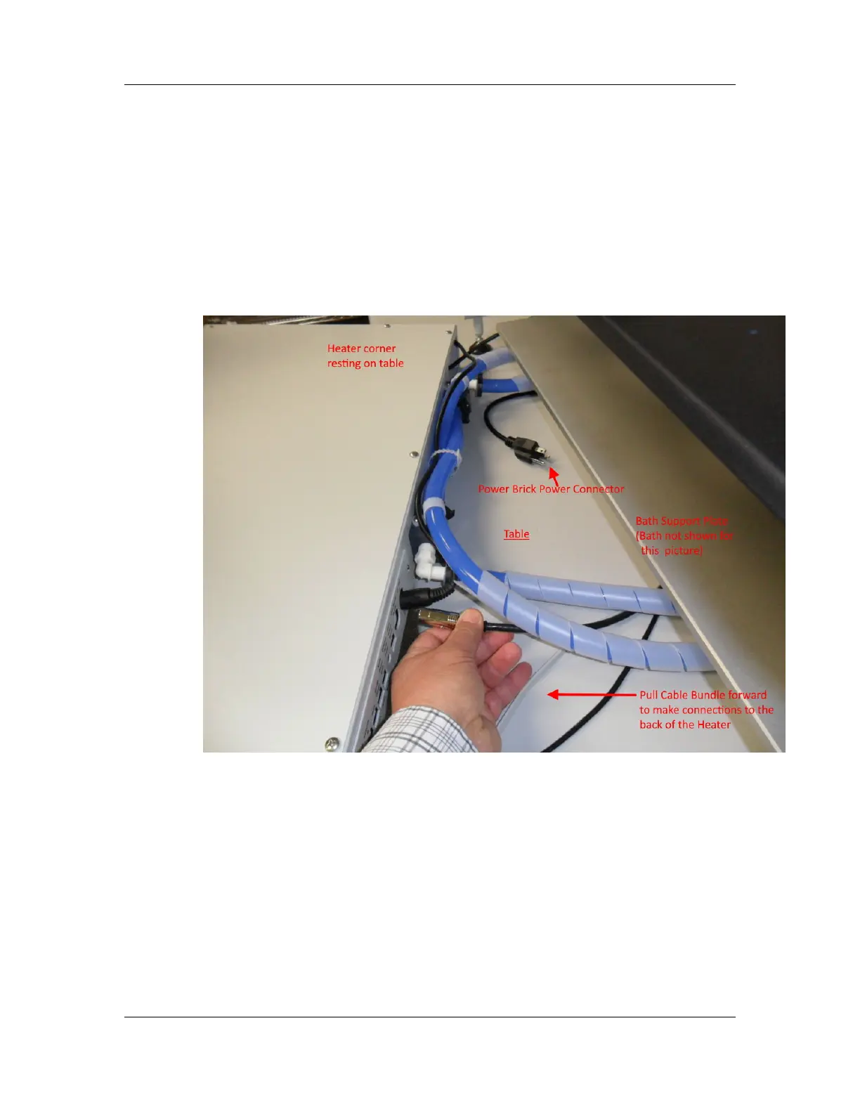 under the bath support plate, and on top of the cable