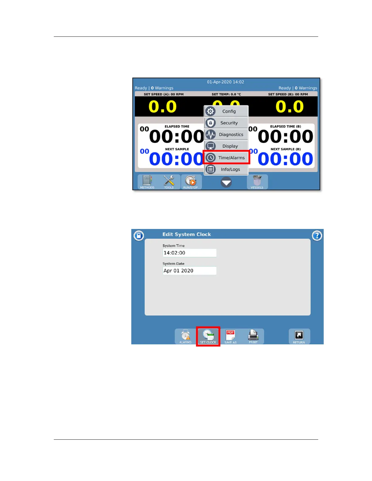 13. Touch the ‘Set Clock’ toolbar button and adjust the