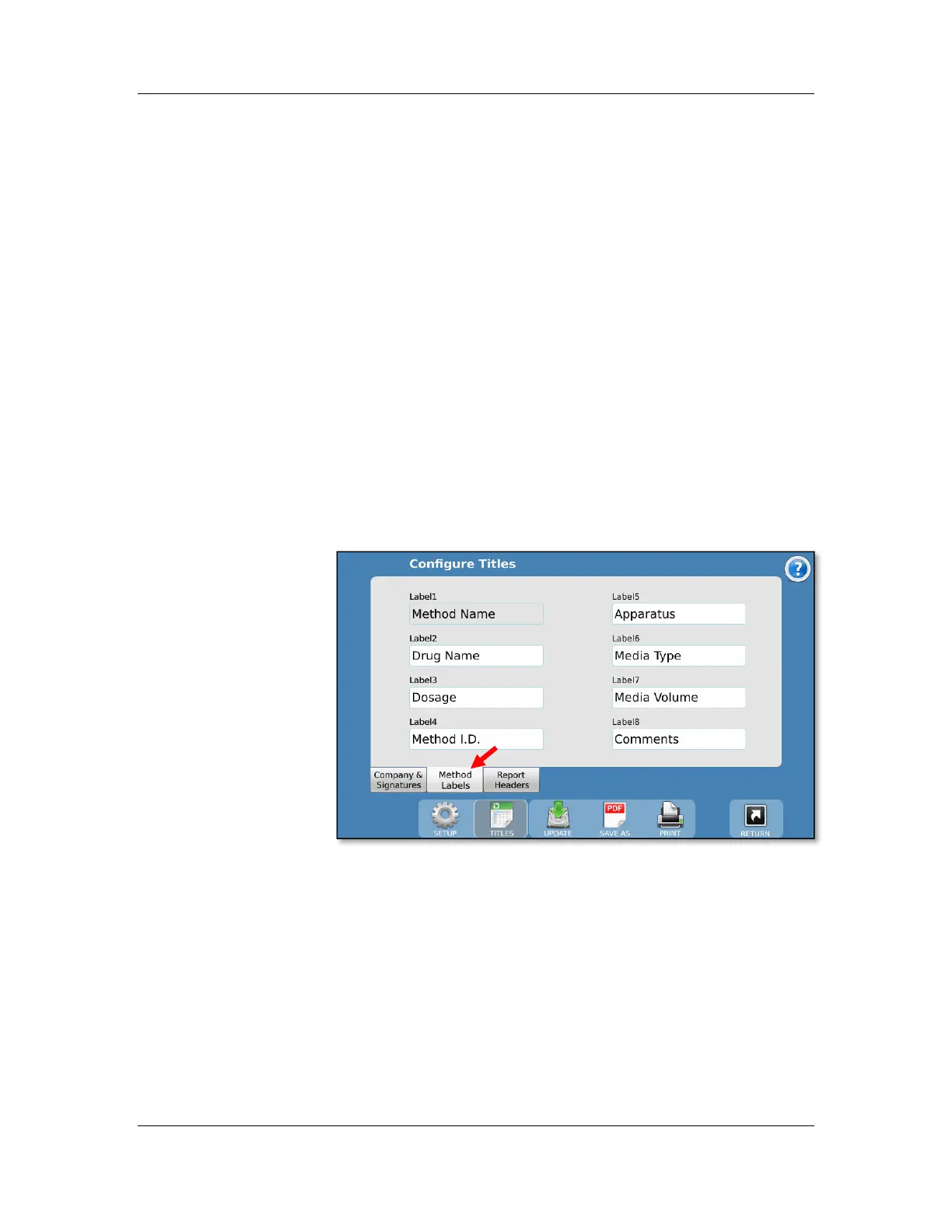 The Method Labels tab allows for editing the fields of the