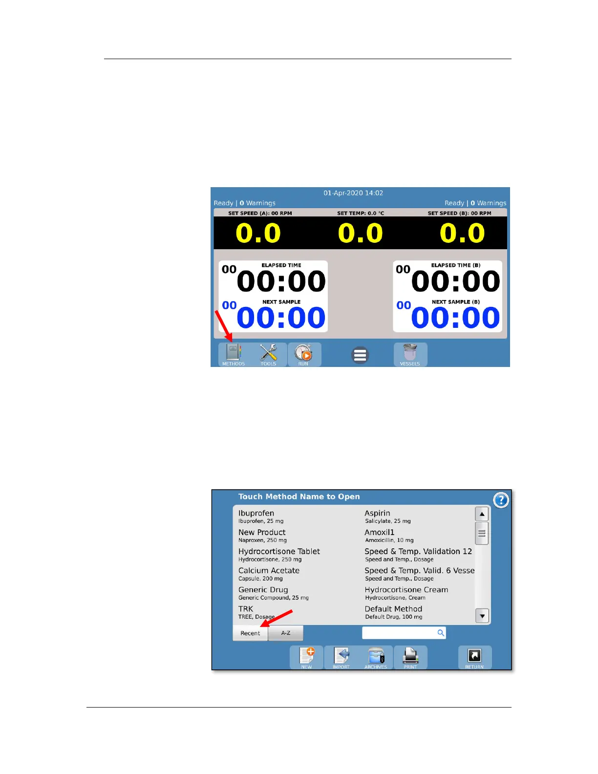 Methods can be accessed by touching the Methods button on