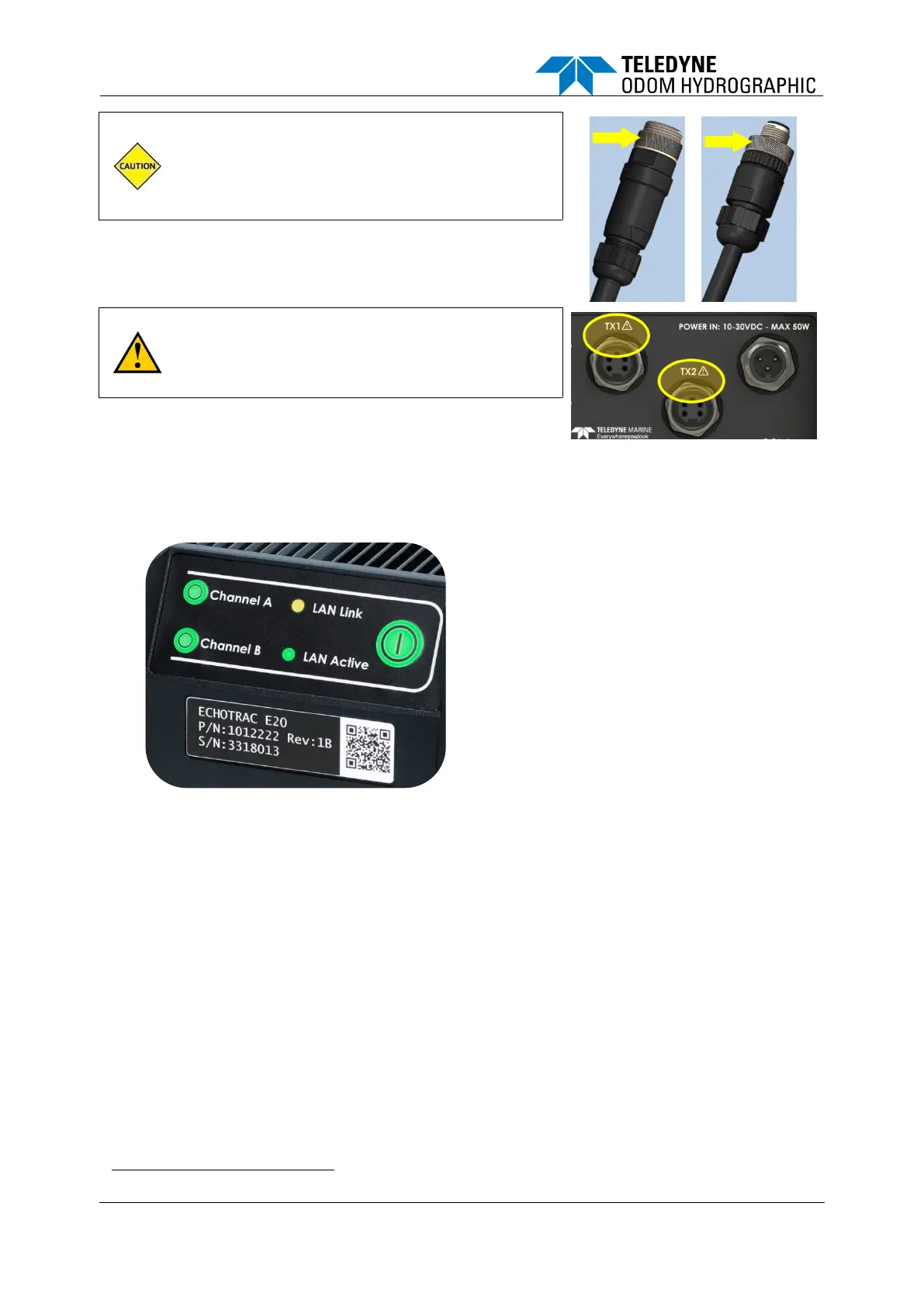 The power button and BITE LEDs are located on the front of the Echotrac E20.