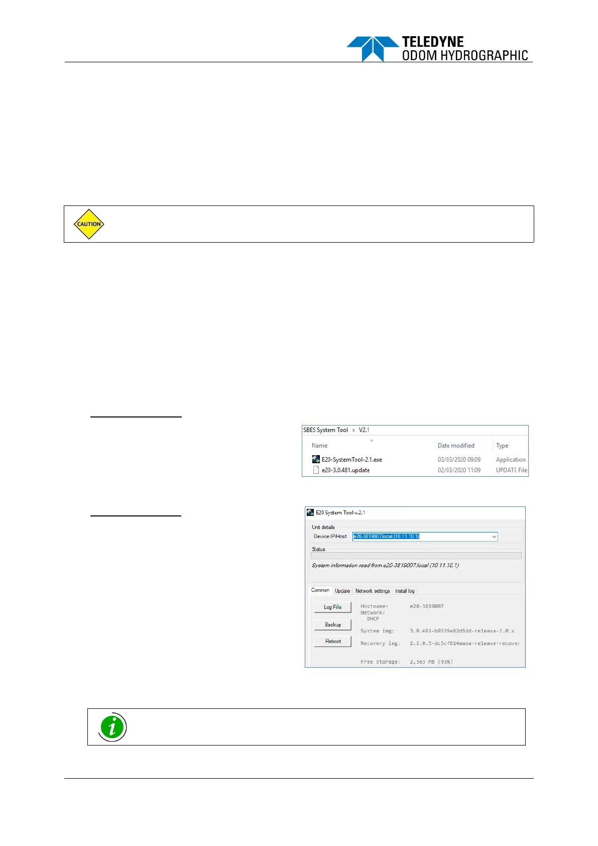 The E20 System Tool allows you to manage the Echotrac E20 echosounder. The tool is provided on