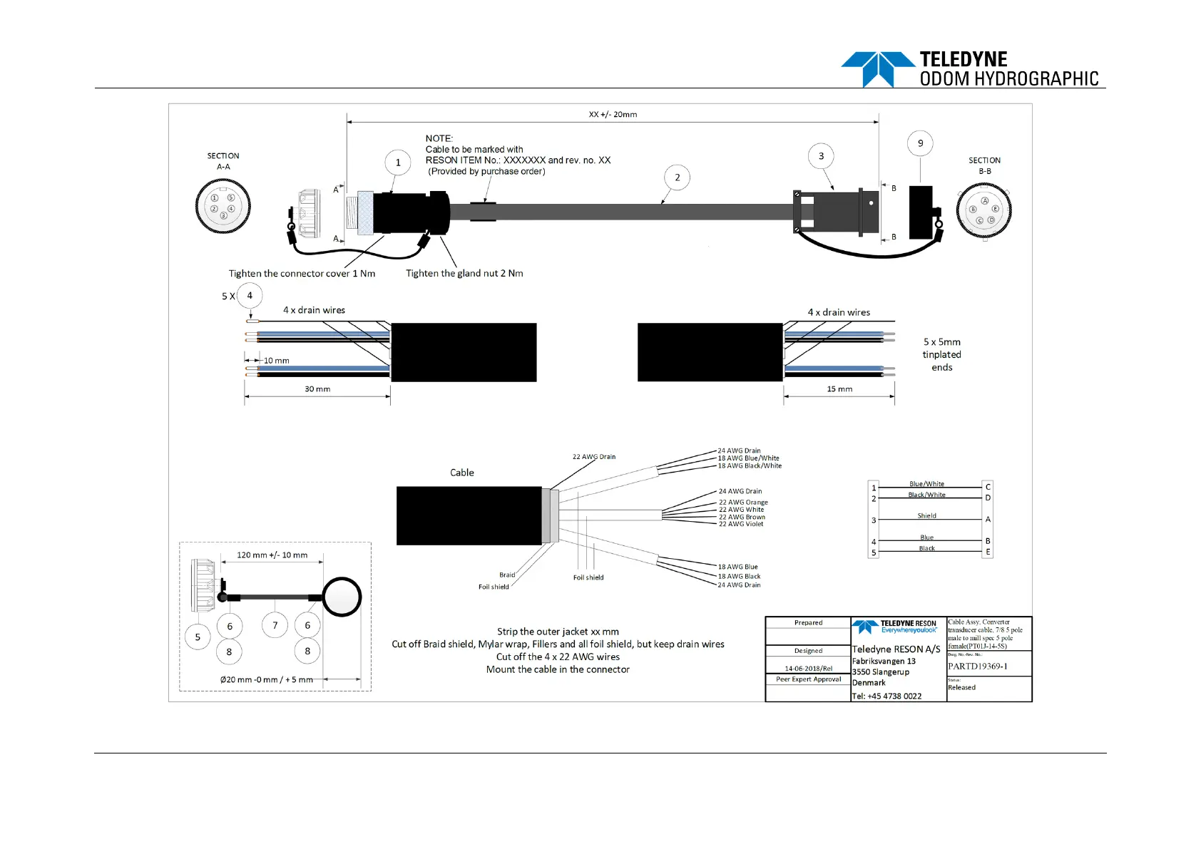 Teledyne Echotrac E20 - Figure 14: Converter Transducer Cable (Optional Component, PN 1013713-DK)