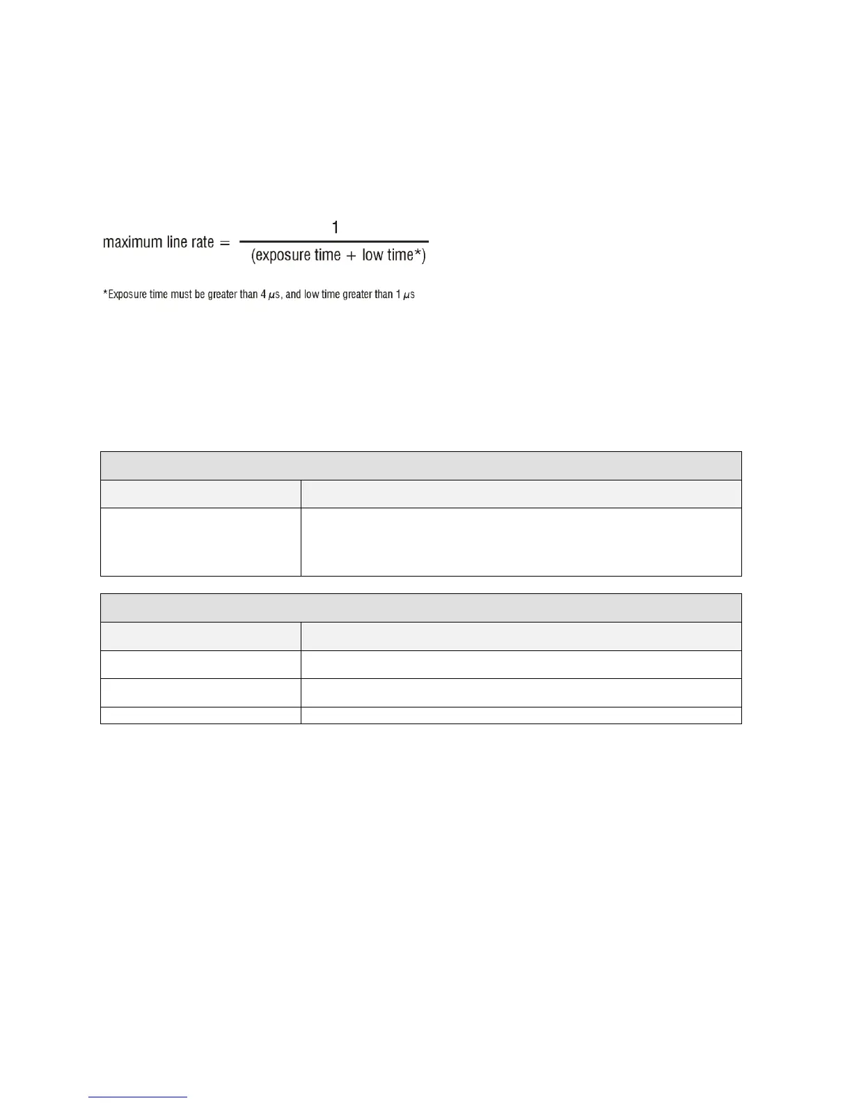 Note: A line rate < 1 / (Exposure time + 1 µs) will return an error (―Invalid Param eter‖) if this cond ition