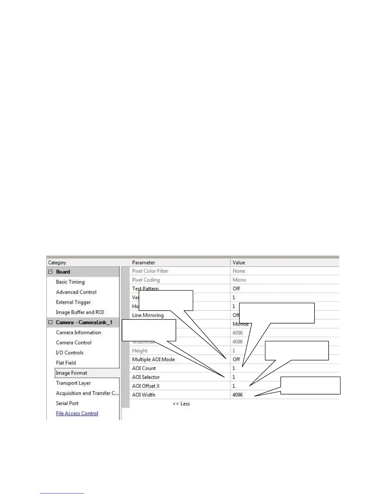 4. AOI Offset X is used indicate the starting pixel of the AOI.