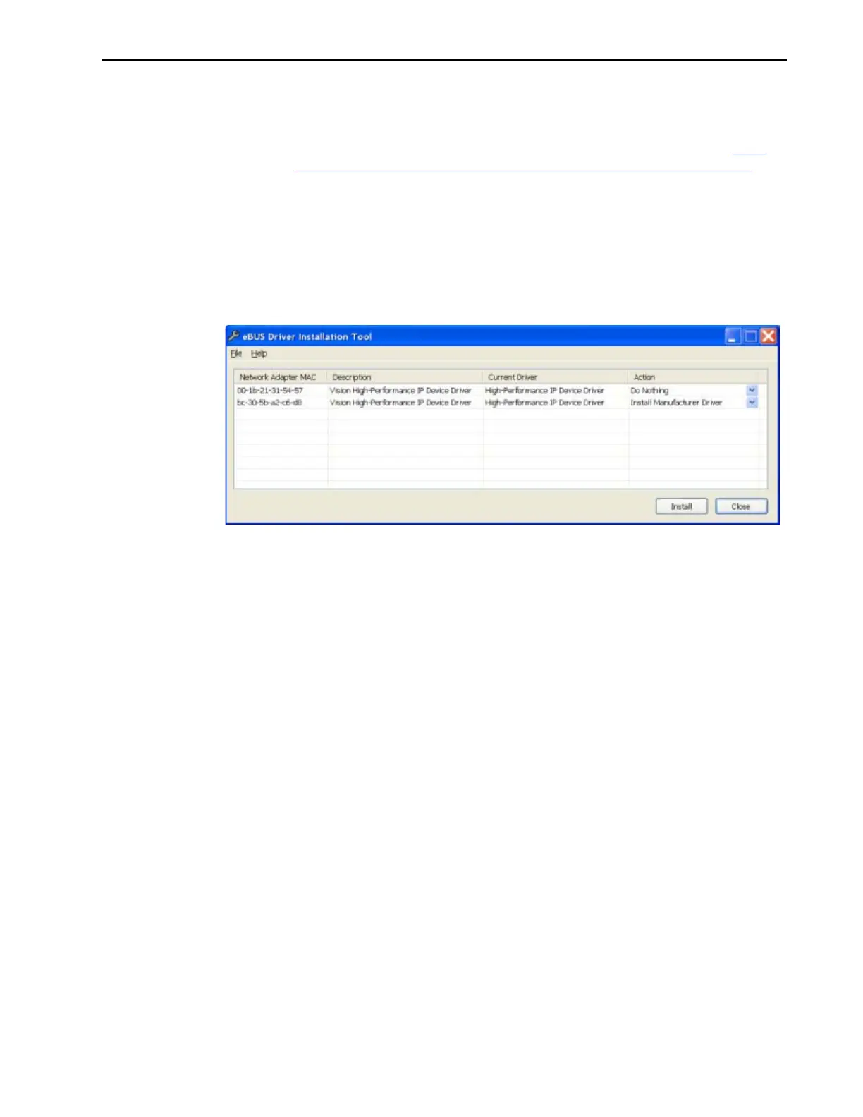 Figure 17-5: eBUS Driver Installation Tool Dialog for WinX