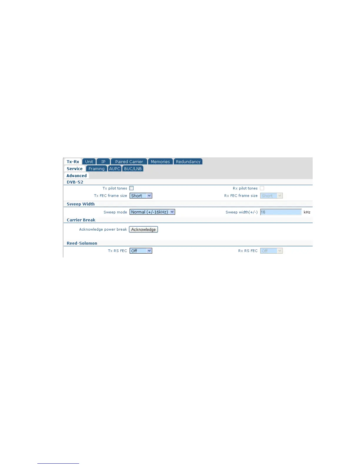 Figure 6-6 Edit->Tx-Rx->Service->Advanced Screen