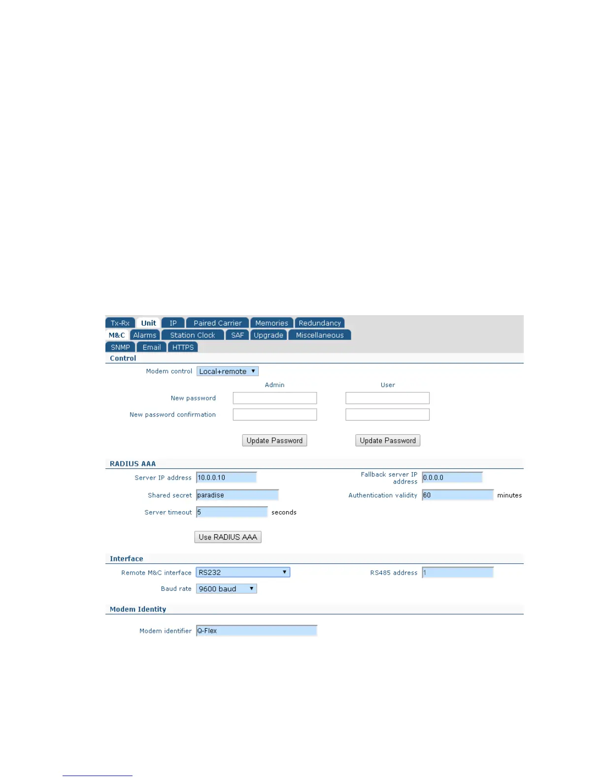 The Edit->Unit->M&C screen is shown in Figure 6-9.