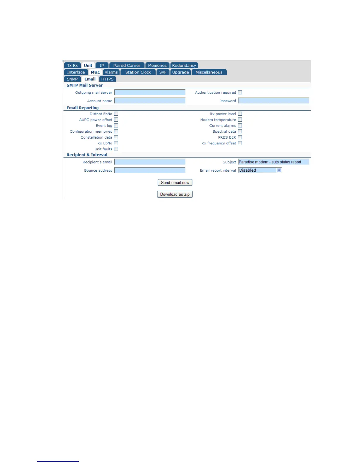 Figure 6-12 Edit->Unit->M&C->Email Screen