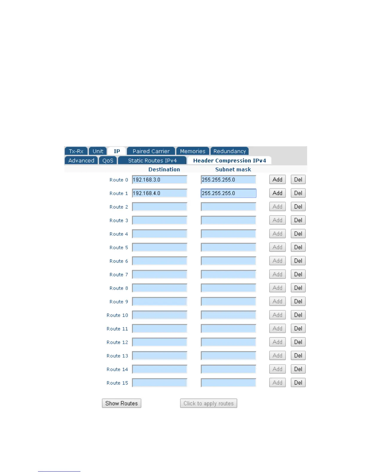 6.2.6 Edit->IP->Header Compression Routes Screen