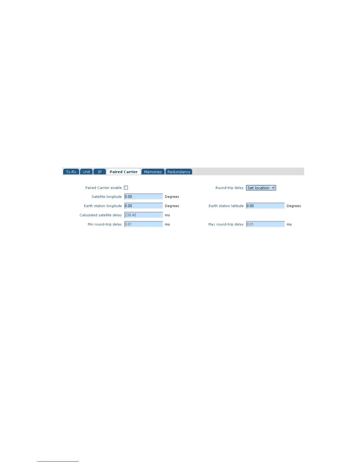Prior to enabling Paired Carrier™ it is necessary to set up the delay to satellite as in the