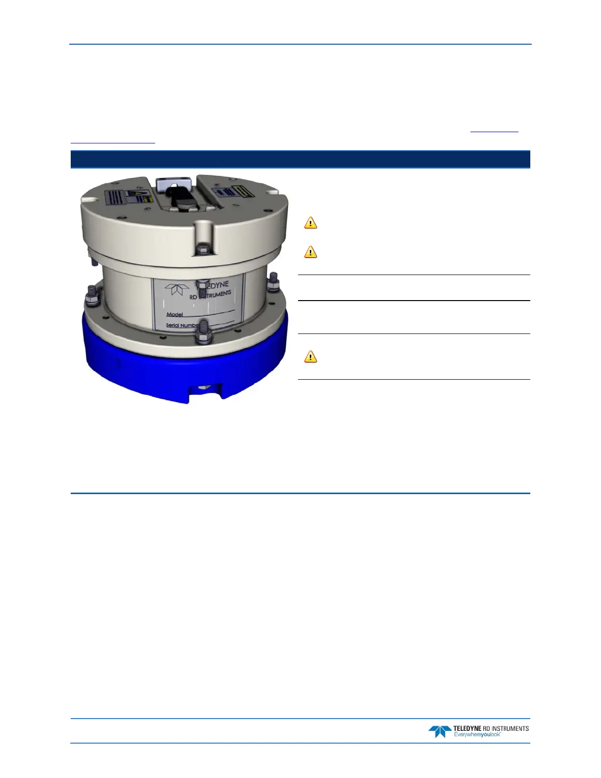 case, and I/O cable. The standard acoustic frequency is four 1200 kHz Janus beams. See the Outline In-