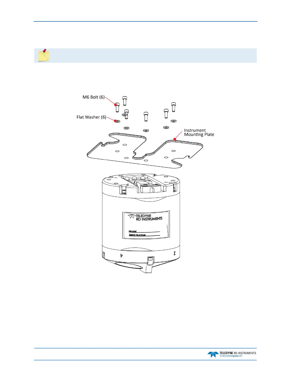 2. Install the mounting plate to the transducer end-cap using the six M6 bolts and flat washers.