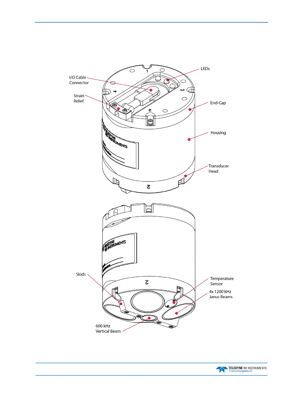 This section is a visual overview of the RiverPro/RioPro ADCP. Use the following figures to identify the
