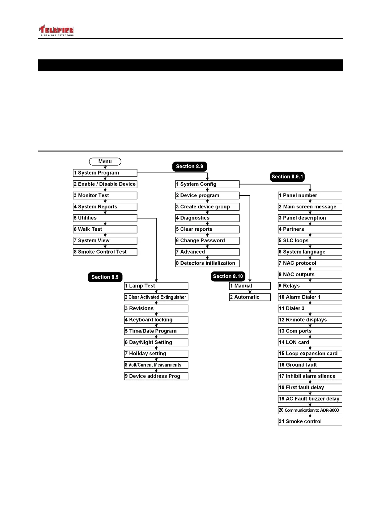 Telefire ADR-7000 - 7 System Configuration (Programming) Process; Menu Structure