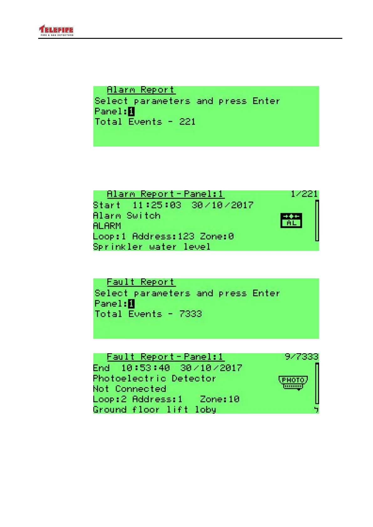 System reports detail the number of alarms, faults, devices under test, key operations,