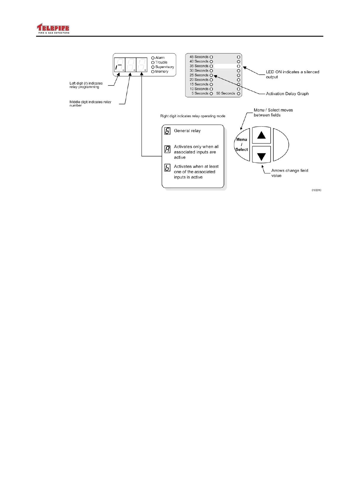 relay, or Supervisory relay using the LEDs to the right of the digital display.