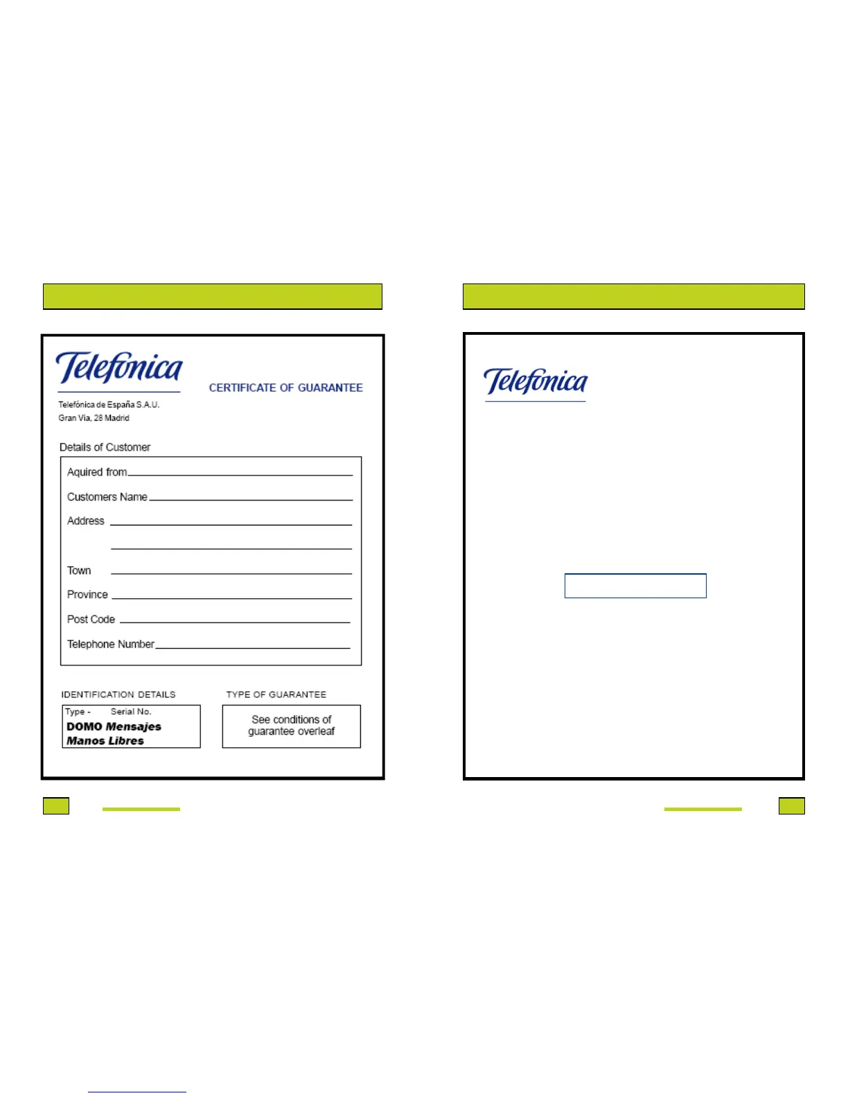 and installations after the sale from TELEFONICA OF SPAIN.