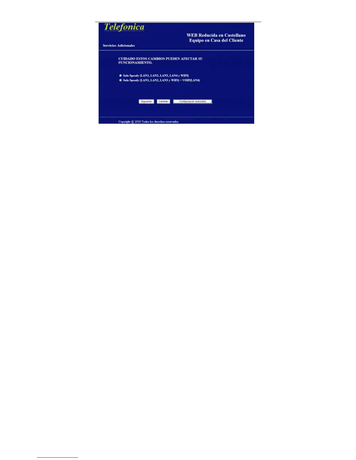 When Solo Speedy (LAN1, LAN2, LAN3 y WIFI)+ VOIP(LAN4) is selected, the