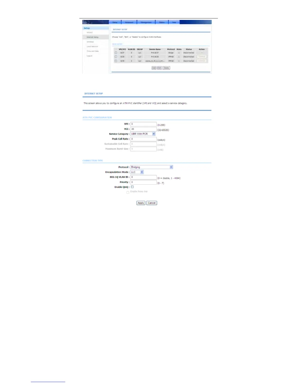 Click Add in “INTERNET SETUP”. The page shown in the following figure