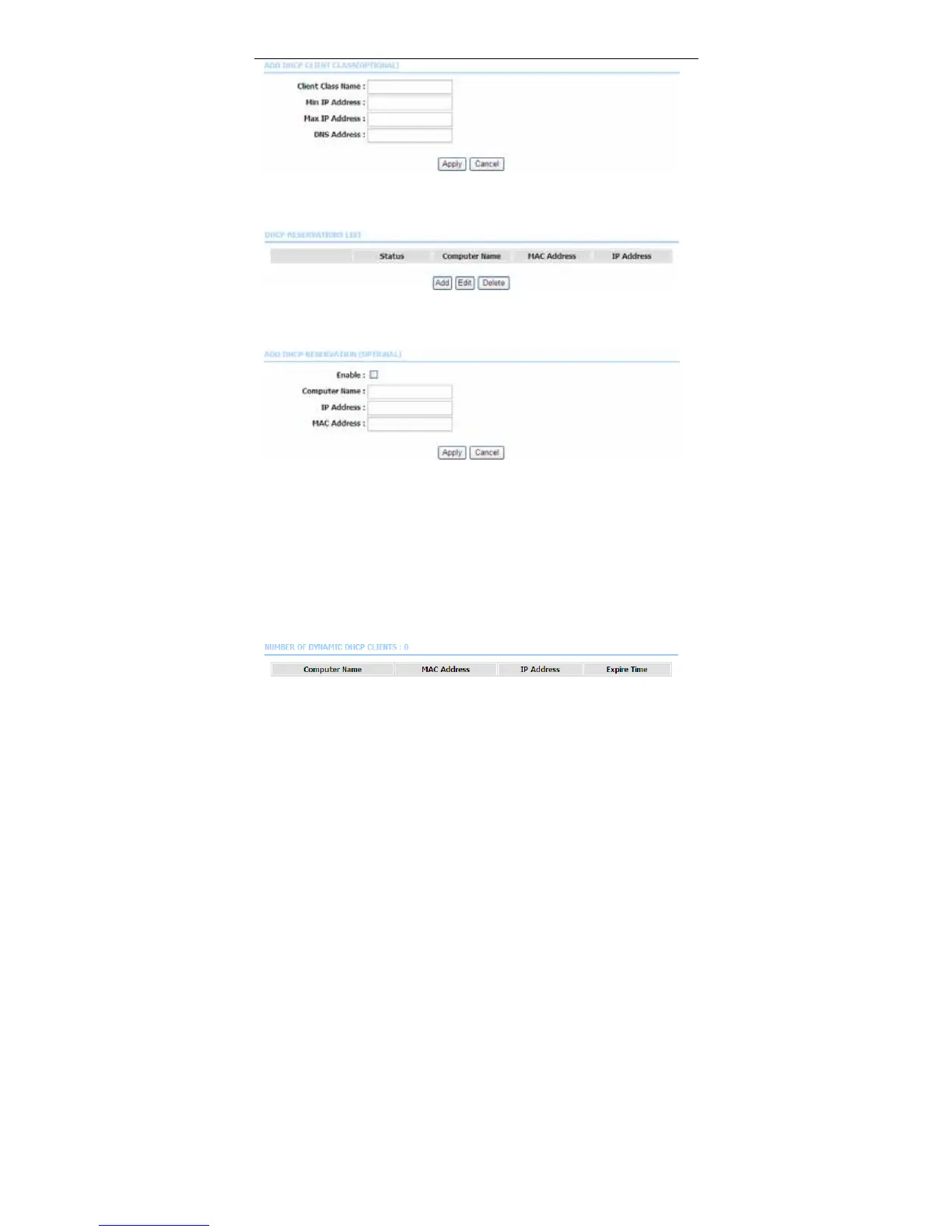 Click Add to add static DHCP (optional). The page shown in the following figure