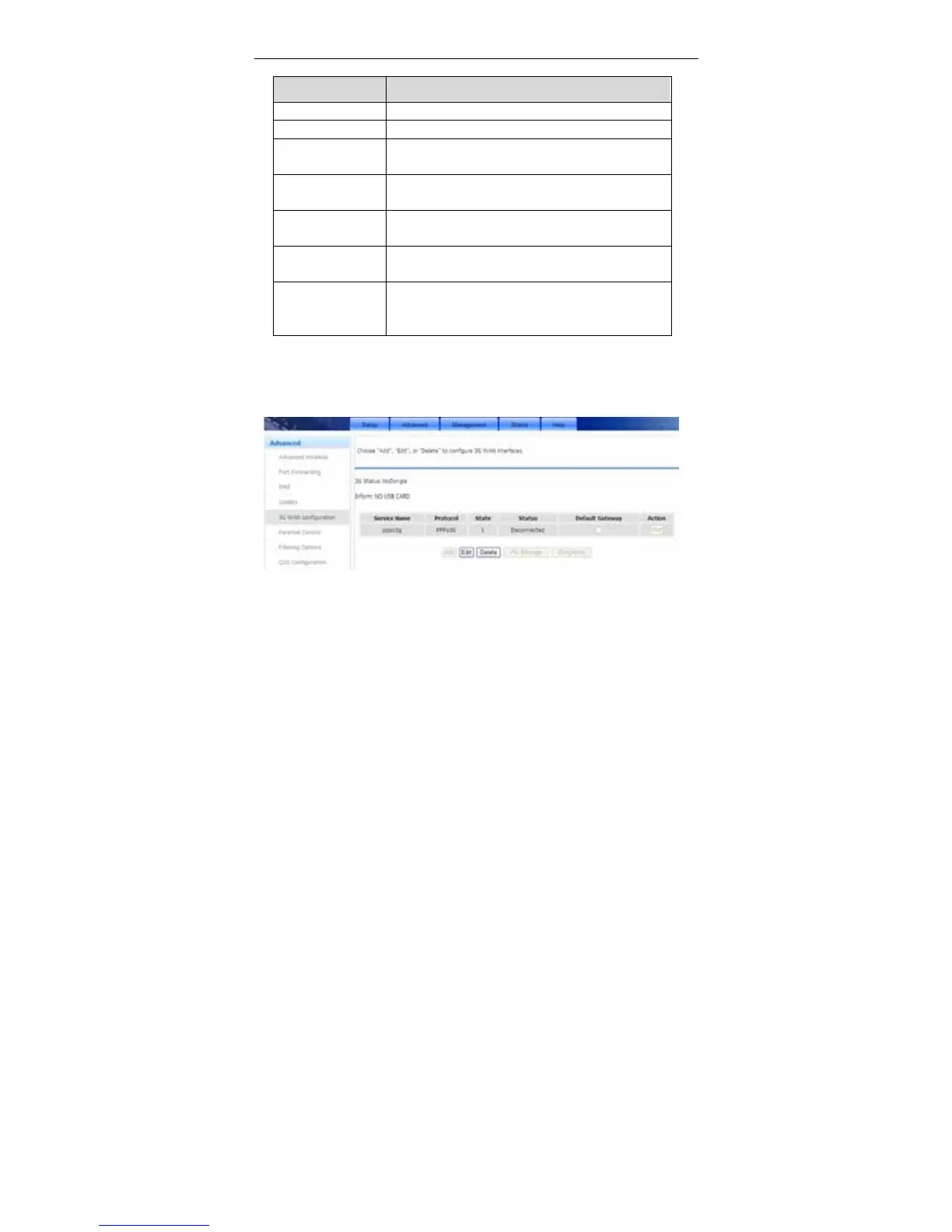 Choose Advanced > 3G WAN Configuration. The page shown in the following