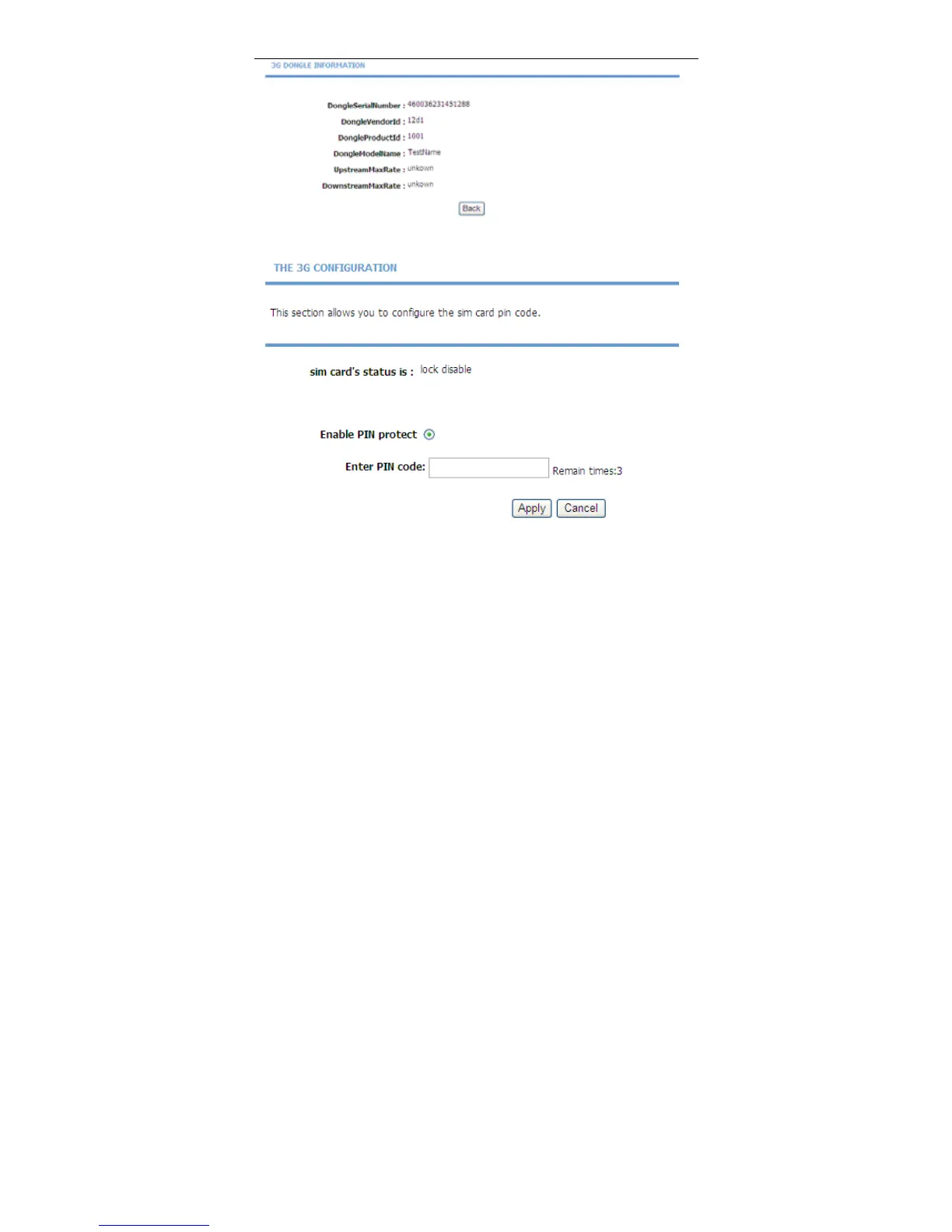 Click Pin Manage to enable the 3G PIN code as shown in the following figure.