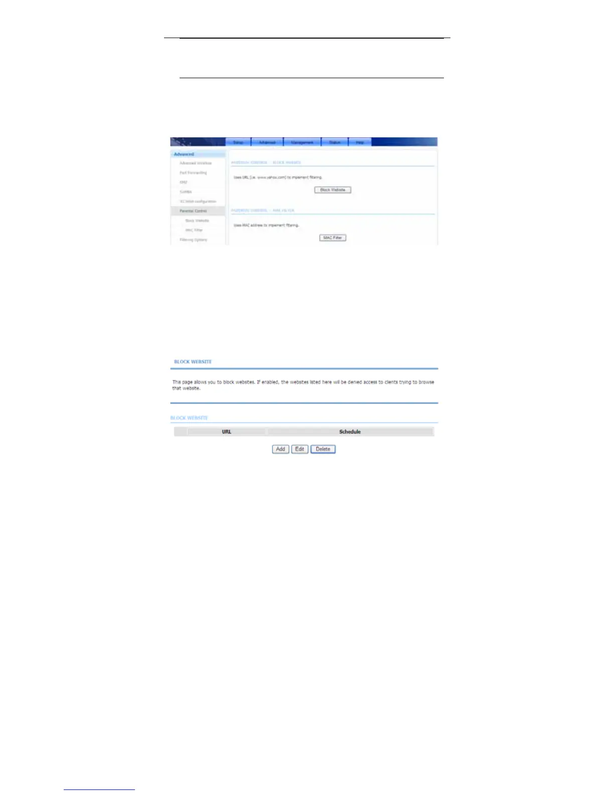 Choose Advanced > Parental Control. The Parent Control page shown in the