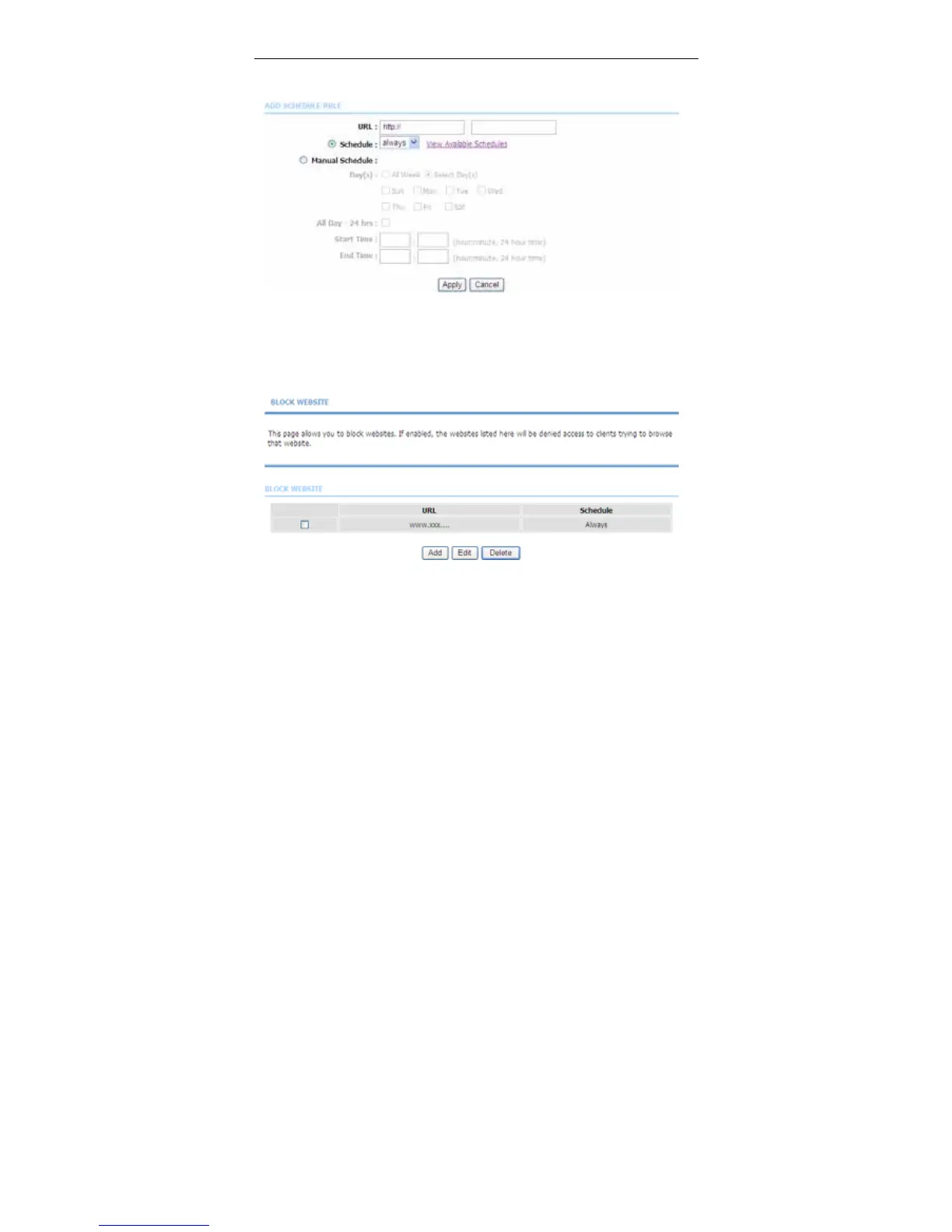 Click Apply to add the website to the BLOCK WEBSITE table. The page shown