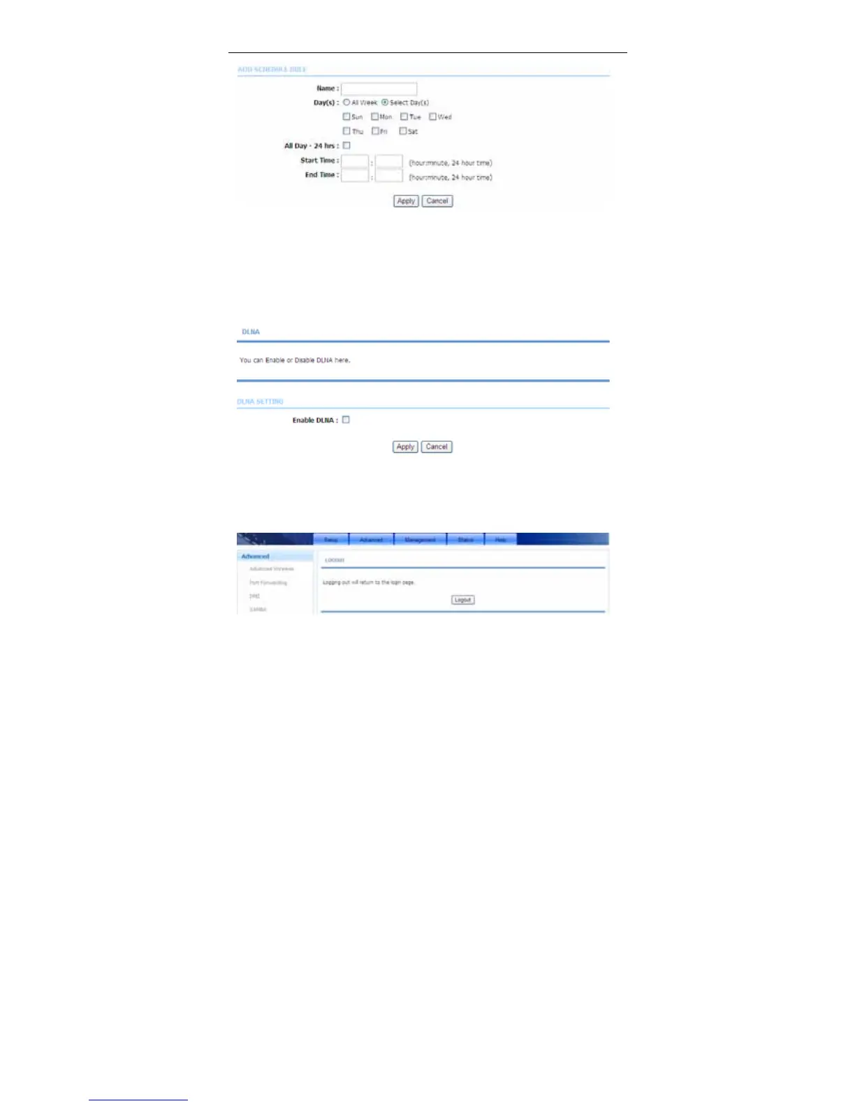 this page, you can choose to enable DLNA and click Apply.