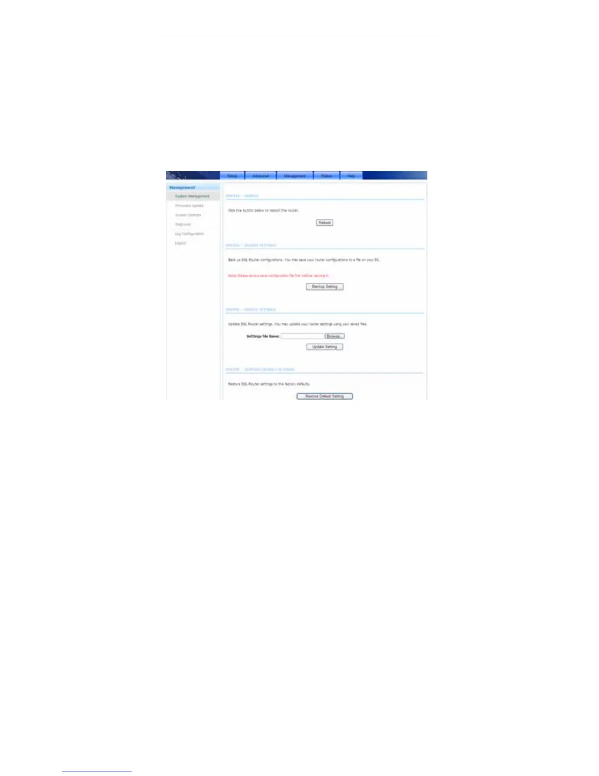Firmware Update, Access Controls, Diagnosis, Log Configuration and