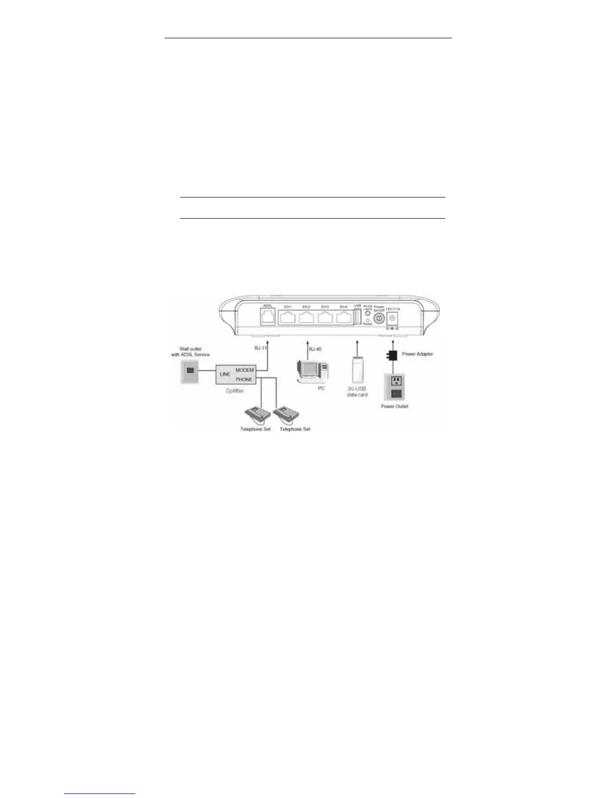 Step 1 Connect the ADSL port of the device and the Modem port of the