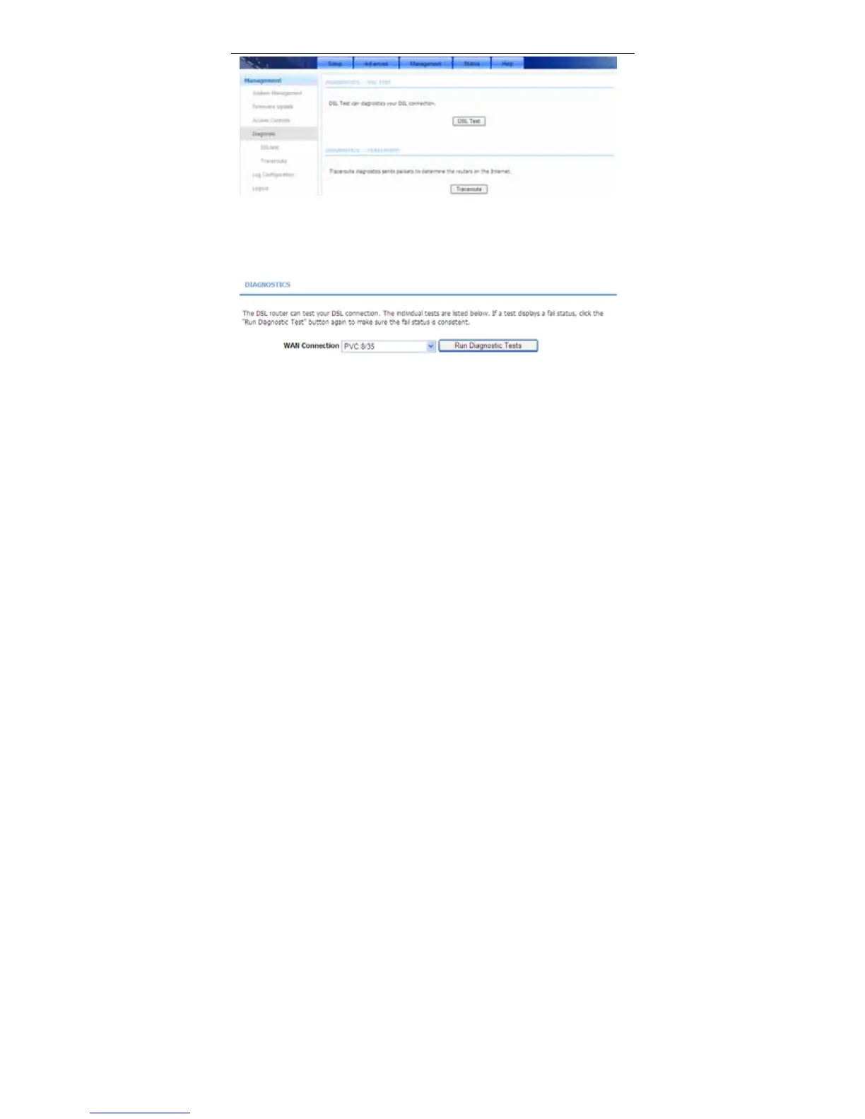 In the Diagnosis page, click DSL Test. The page shown in the following figure