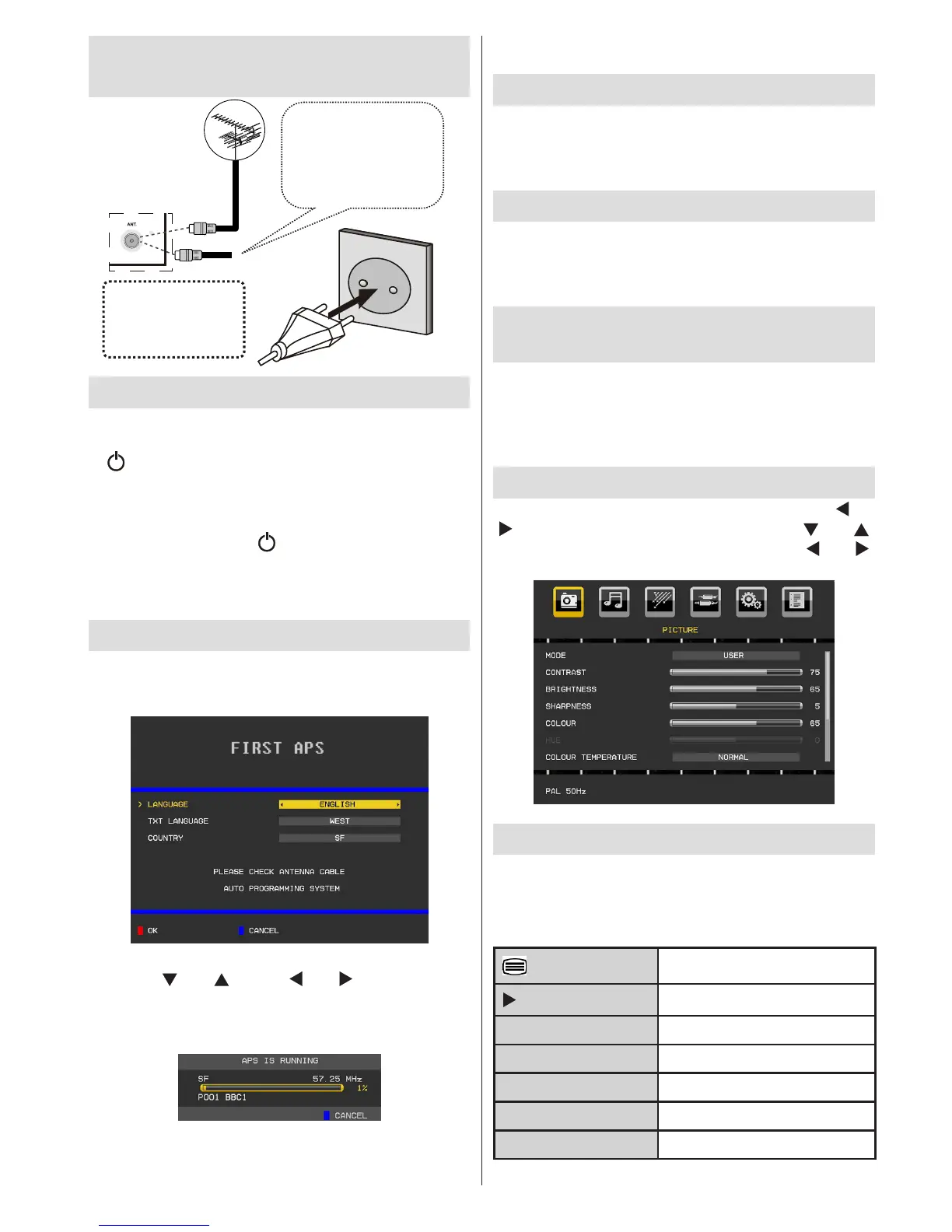 the remote control. The TV will then switch on..