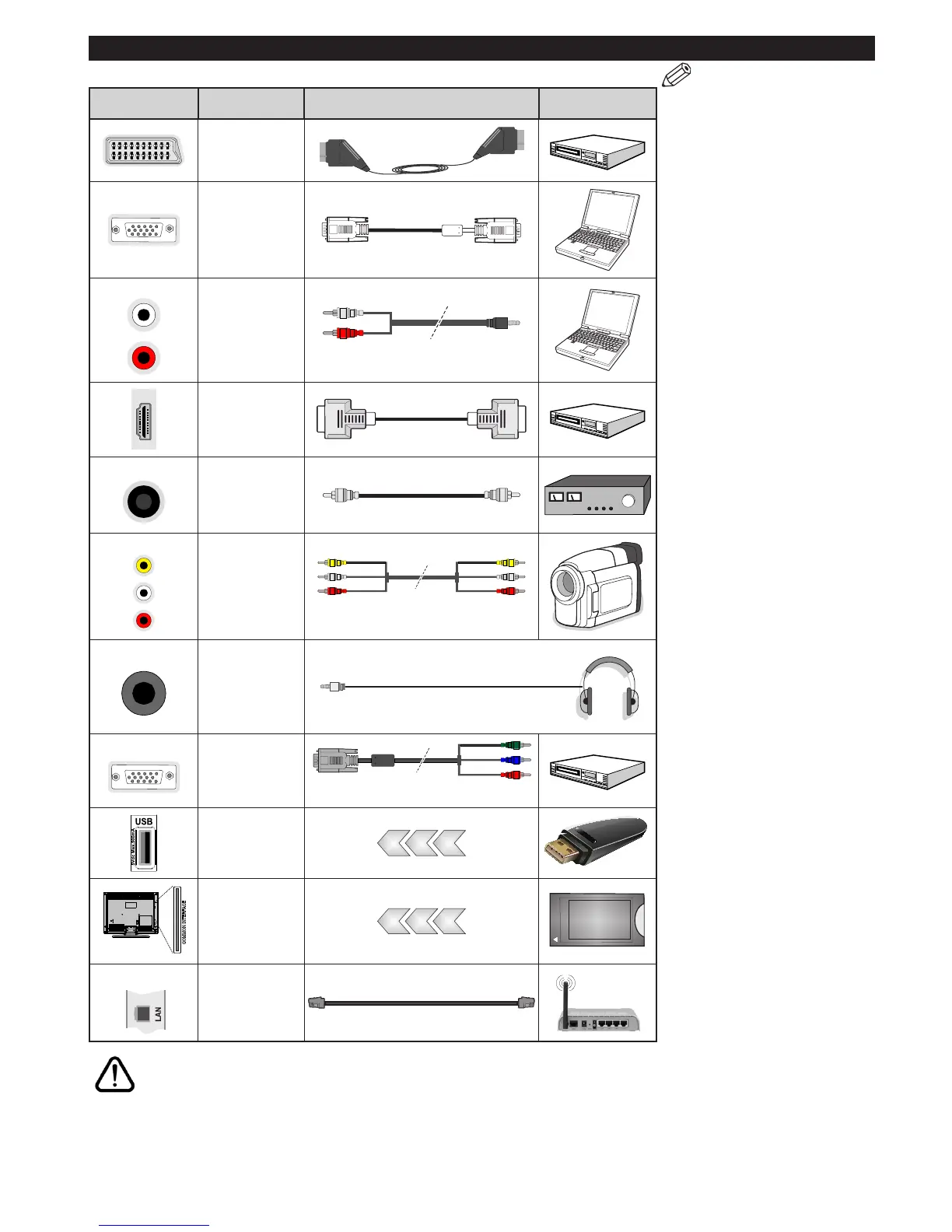 If you want to connect a device to the TV, make sure that both the TV and the device are turned off before making