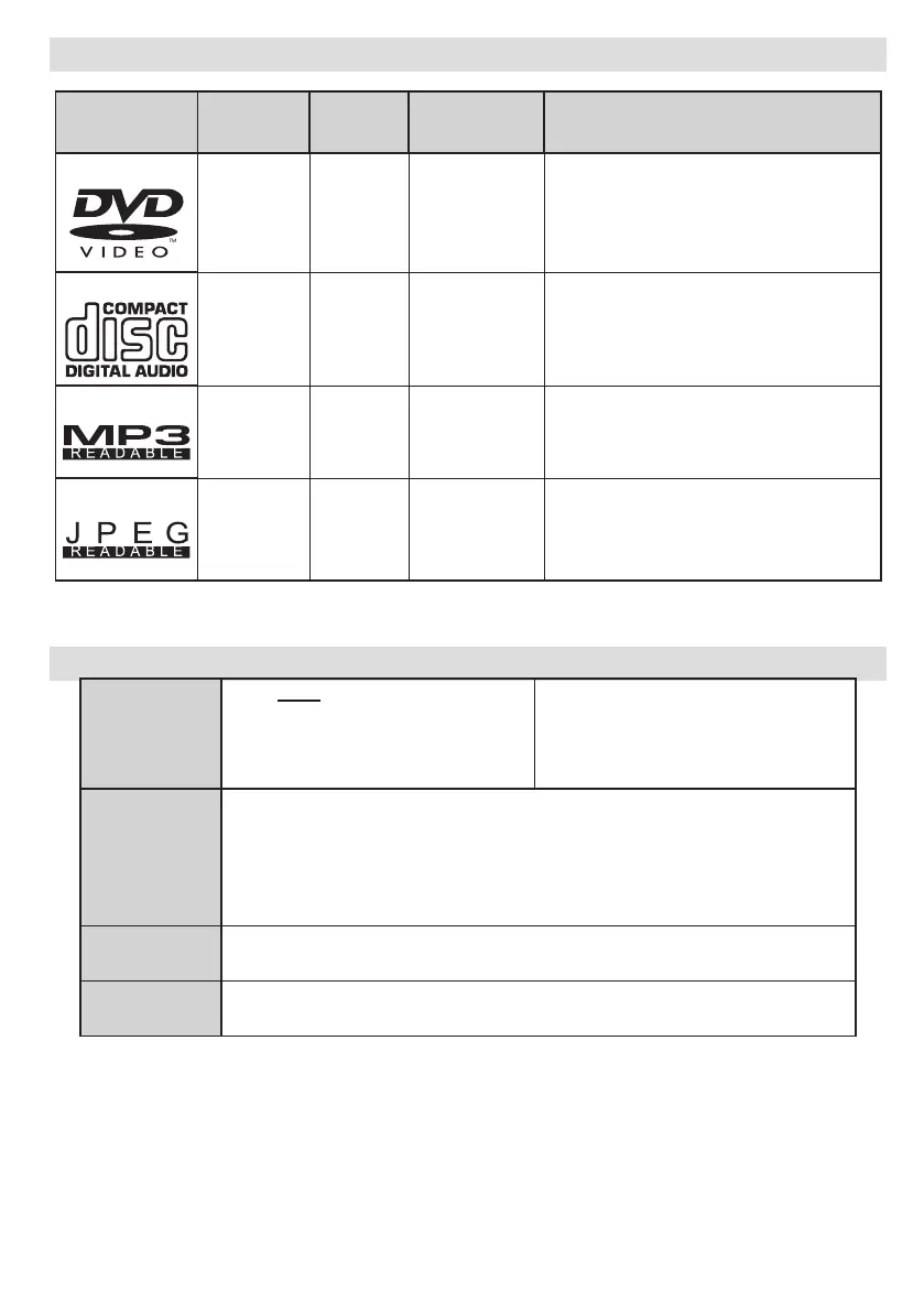 Disc Types Compatible with This Unit