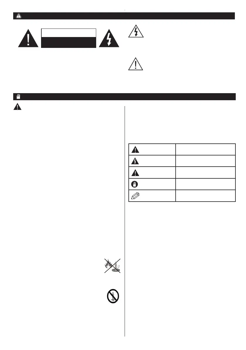 •Do not place the TV on sloping or unstable surfaces,