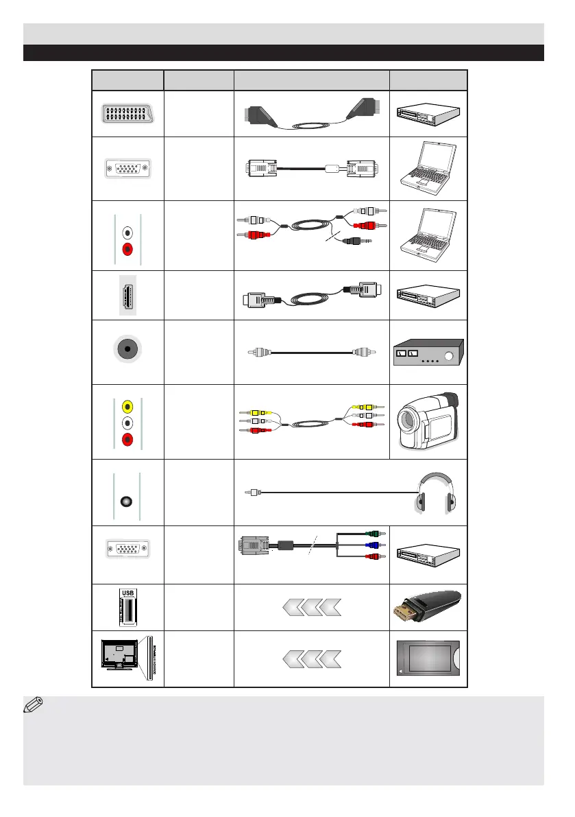 cable’s WHITE & RED inputs. If an external device is connected via the SCART socket, the TV will automatically
