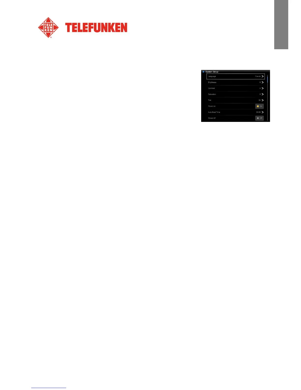 Select “Language” using the “Up/Down” keys on the remote and press “Enter”, then use the