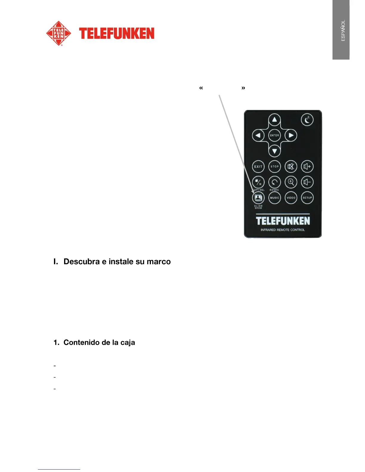 Le agradecemos la compra de un marco de fotos digital TELEFUNKEN DPF 10934. Antes de utilizar el