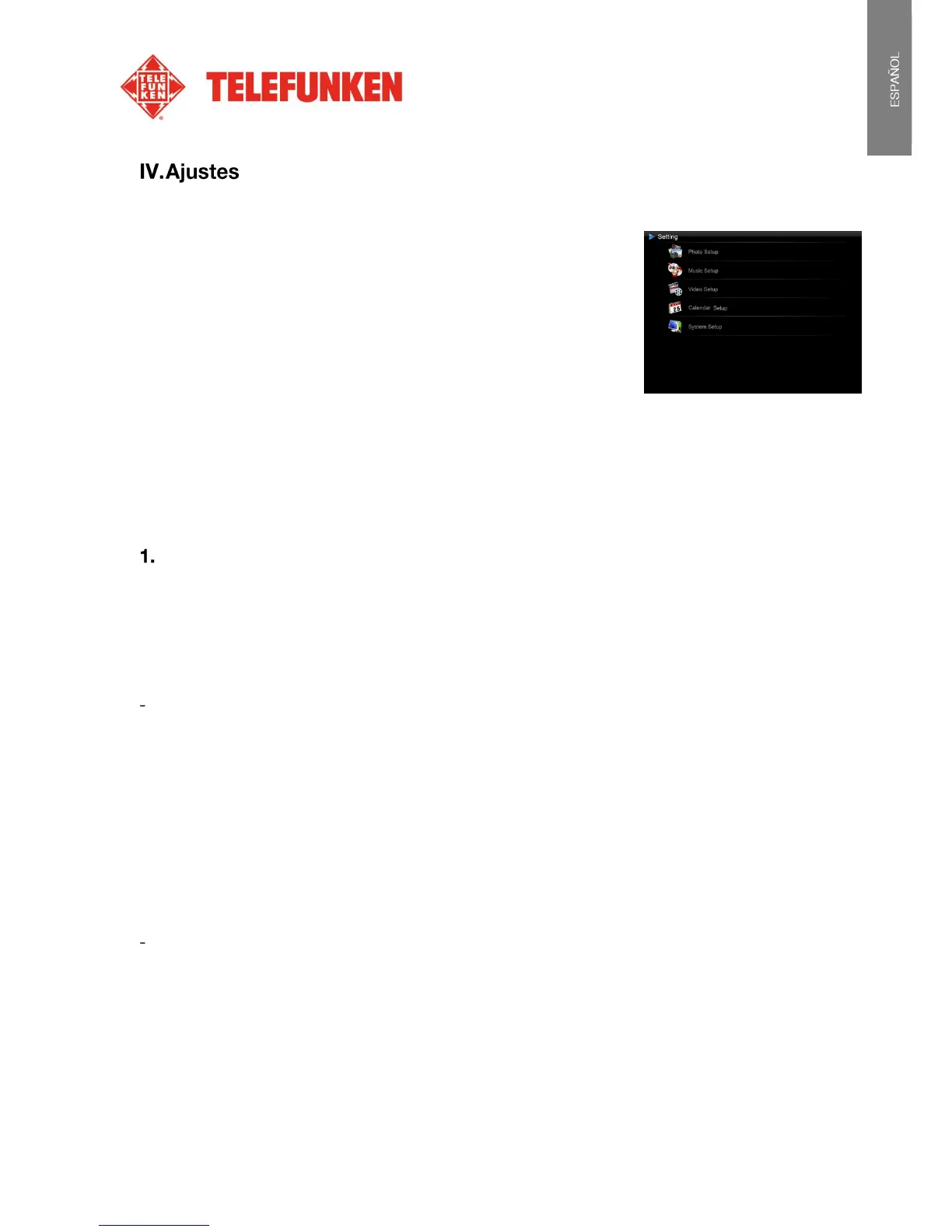 Seleccione «Configuración de Foto» mediante los botones de «Arriba / Abajo» del mando a distancia, a